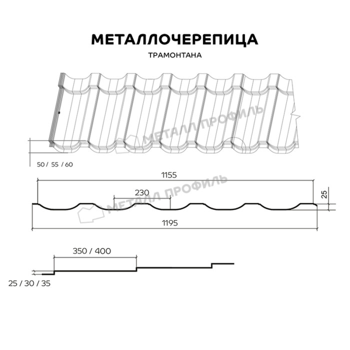 Металлочерепица Металл-Профиль Трамонтана-M 0,5 NormanMP RAL 7024 Серый графит
