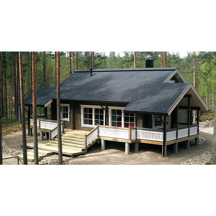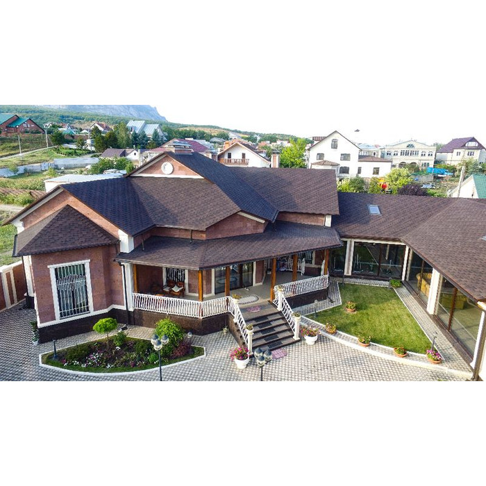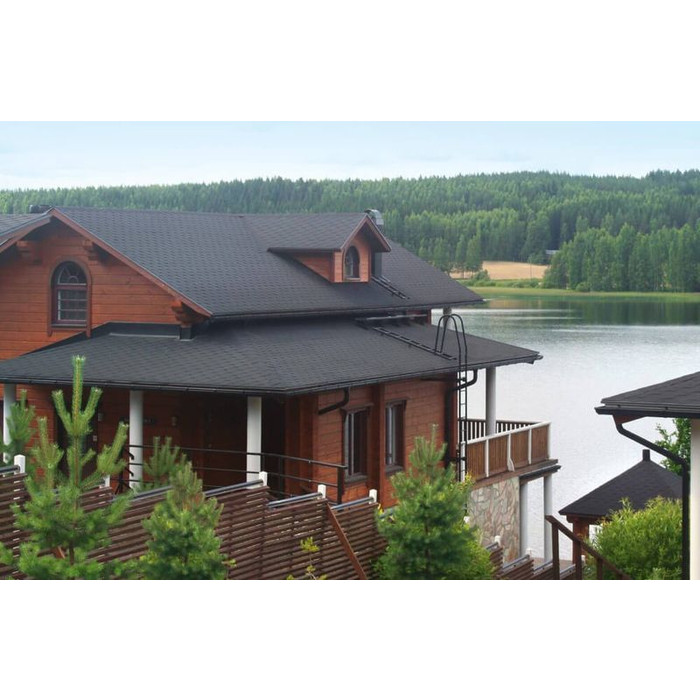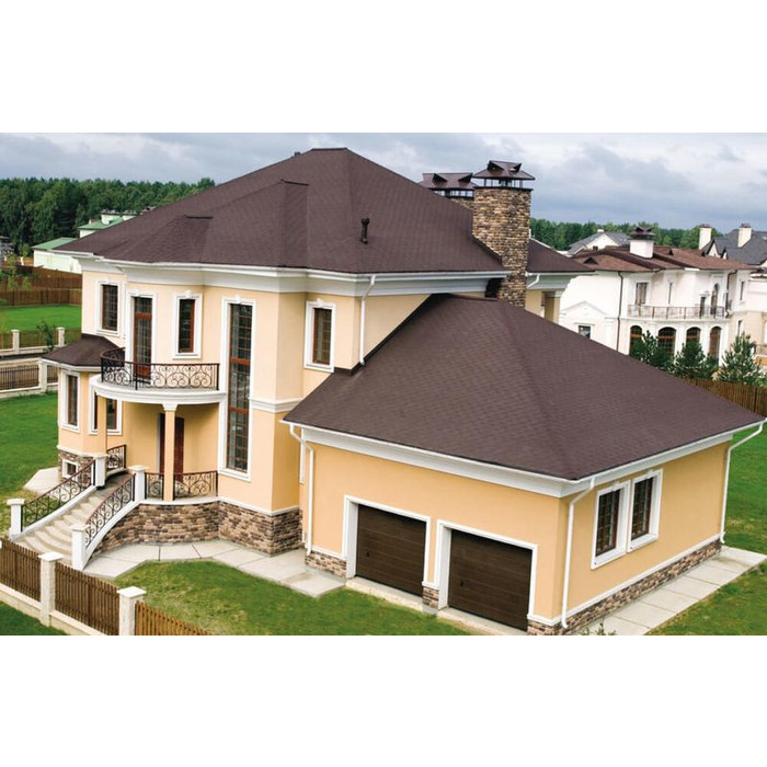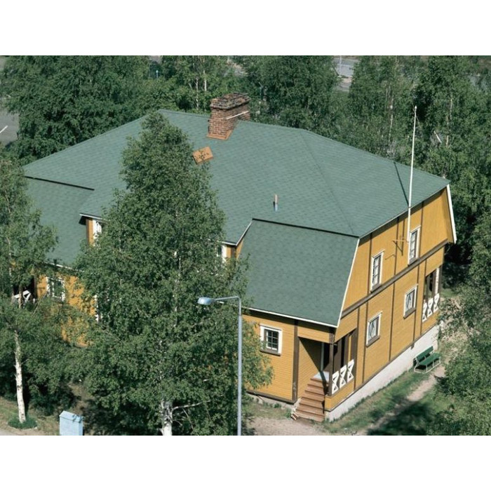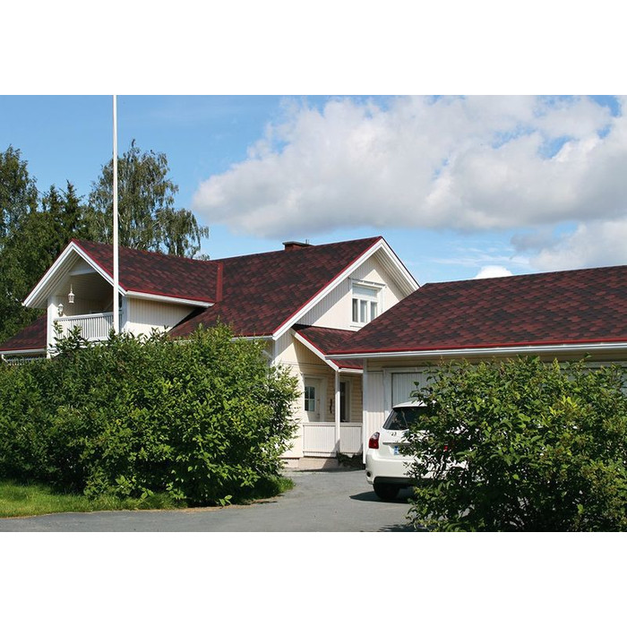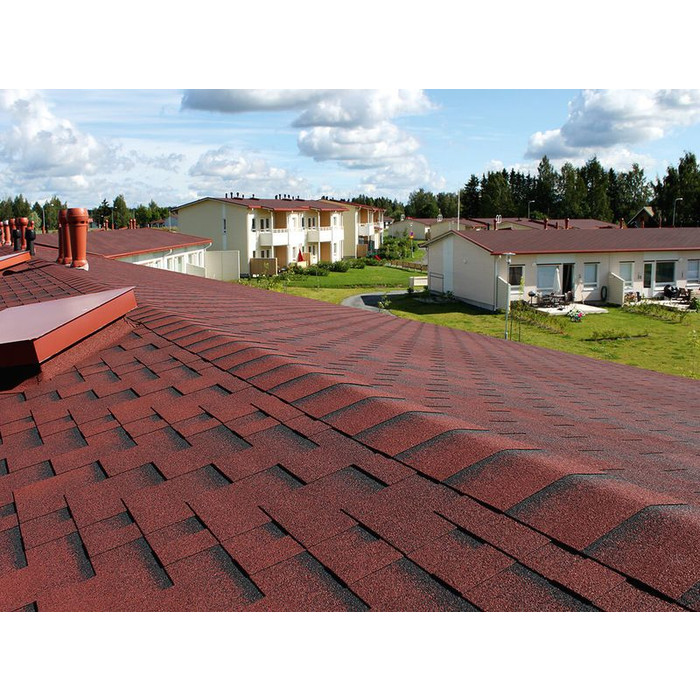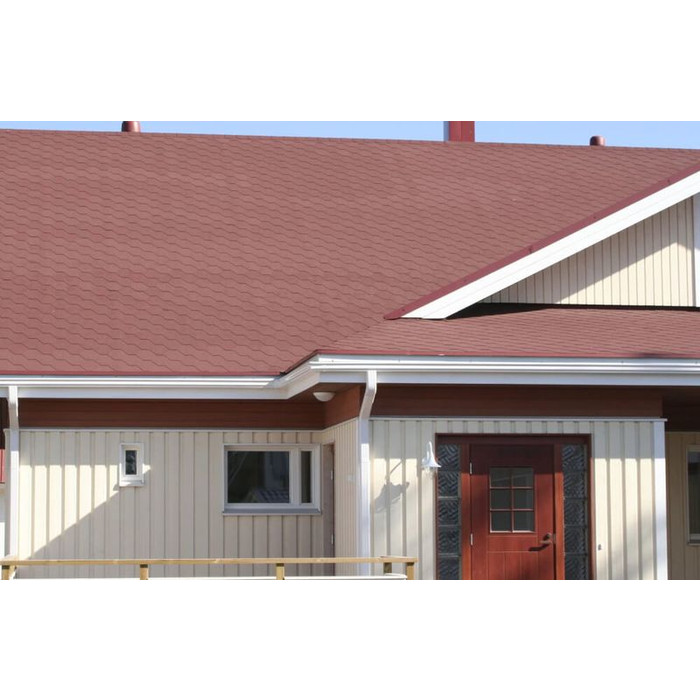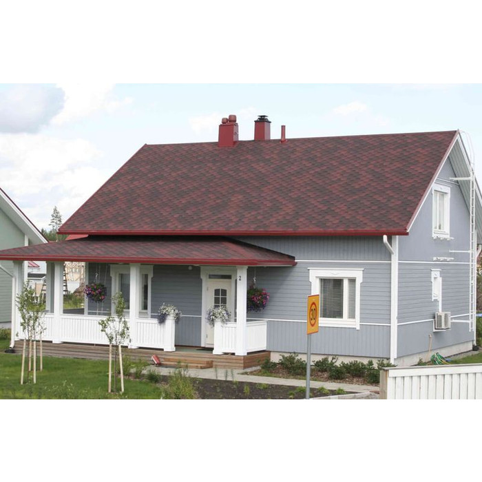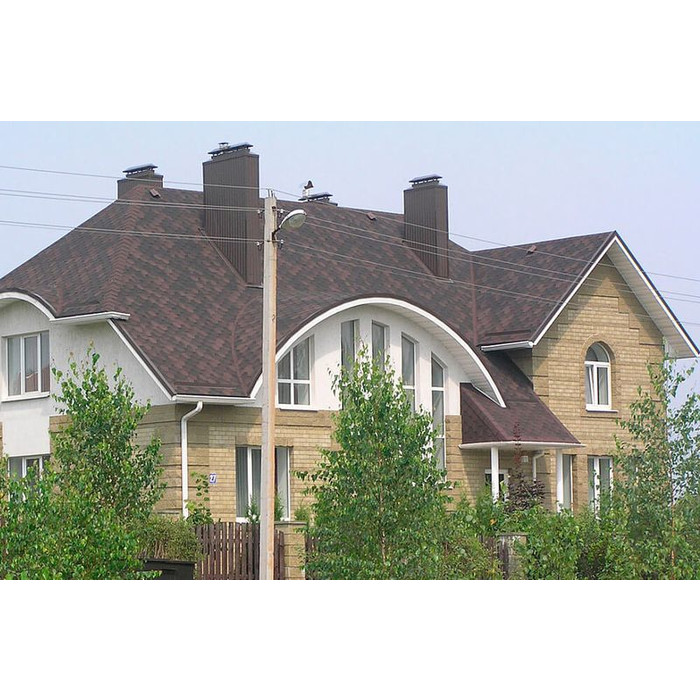 Мягкая кровля Катепал от финского производителя хорошо подходит для строительства жилых домов, производственных и административных зданий, а также коммерческих объектов. Монтаж такой черепицы выполняется при помощи битумного клея и специальных кровельных гвоздей, благодаря чему получается очень устойчивое к действию атмосферных осадков, ветра, плесени и солнечных лучей покрытие. Она хорошо подходит для обустройства кровли с уклоном не менее 11 градусов.