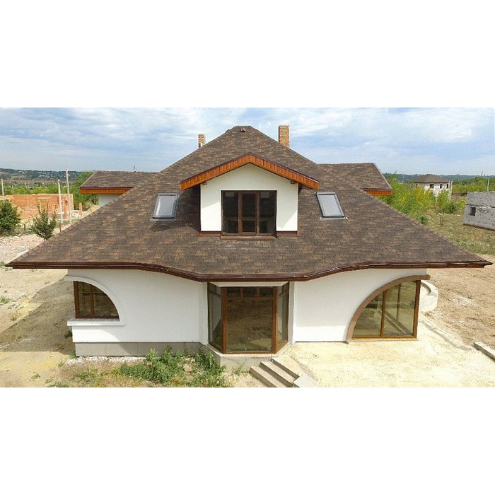 Изготавливается она из битумного полимера SBS (стирол-бутадиен-стирол), что придает мягкой кровле водонепроницаемость и эластичность. Верхний слой этого материала состоит из цветной минеральной крошки, придающей ему неповторимые оттенки и делающей его поверхность шероховатой. Благодаря наличию инновационной самоклеющейся системы после монтажа гибкой черепицы стыки швов становятся герметичными. В продаже черепица торговой марки Катепал представлена несколькими коллекциями и большим разнообразием цветов. Каждая коллекция представлена готами определенной формы и размеров. Вес 1 м2 такой черепицы равен всего 8 кг.