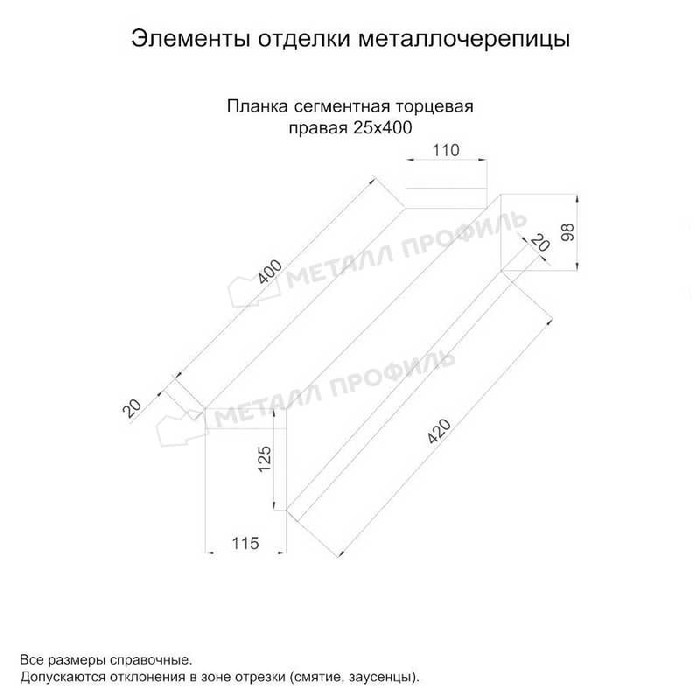 Планка сегментная торцевая правая Металл Профиль