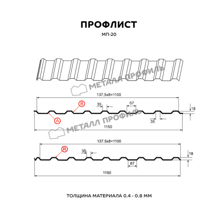Профлист Металл-Профиль МП-20 Полиэстер 0.45 мм RAL 9002 Серо-белый